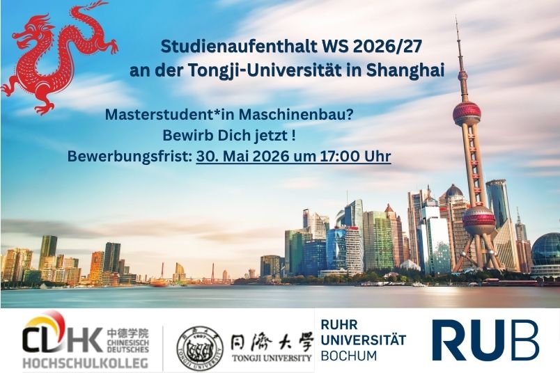 Mit Unterstützung der Fakultät für Maschinenbau nahm eine Gruppe RUB-Studierender an der diesjährigen Summer School der Tongji-Universität teil. Neben Fachvorträgen zu Mobilität, Künstlicher Intelligenz und nachhaltiger Produktion standen Exkursionen, Sprachunterricht und interkulturelle Begegnungen auf dem Programm. Die Fakultät beteiligte sich organisatorisch und förderte ihre Teilnehmenden mit Stipendien – ein starkes Zeichen für gelebte internationale Zusammenarbeit.