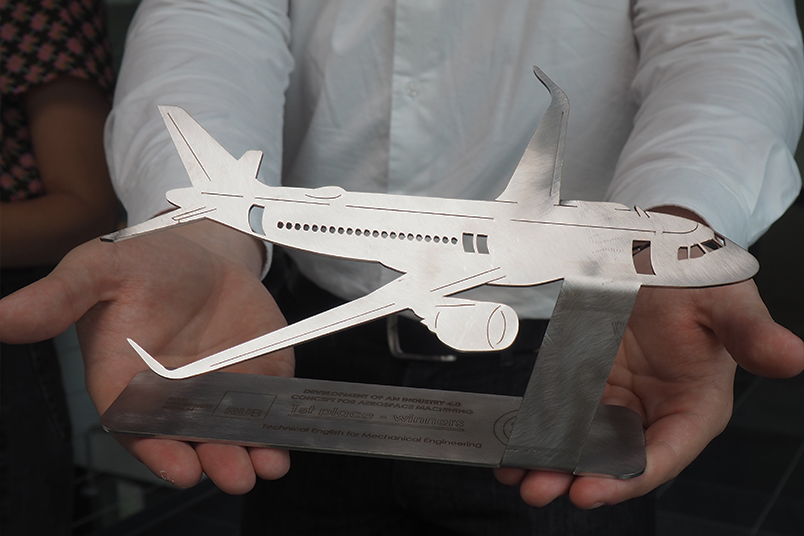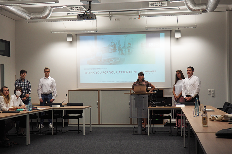 „Mit welchen digitalen Lösungen der Industrie 4.0 kann die HEGGEMANN AG ihre komplexen Zerspanungsprozesse mit Blick auf Effizienz und Qualität unter den branchenspezifischen Anforderungen der Luftfahrt optimieren?“: Zu dieser Fragestellung sollten die Studierenden beim Projektwettbewerb der Firma HEGGEMANN AG im Rahmen der Lehrveranstaltung „Technical English“ Lösungskonzepte erarbeiten. Am Mittwoch, den 20. Juli 2022 präsentierten die Studierenden ihre Vorschläge vor den Auftraggebern und den Seminarleiter*innen in einem englischsprachigen Vortrag. Der Projektwettbewerb konnte endlich wieder in Präsenz auf dem RUB-Campus stattfinden.