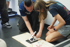Mit insgesamt 11 Teams von sechs Schulen traten die Schüler*innen in zwei Disziplinen gegeneinander an: Einer mittelschweren und einer schweren. In der mittelschweren Kategorie wurde die gespeicherte potenzielle Energie direkt am Wurfarm der Katapulte in kinetische Energie umgewandelt. In der schweren Kategorie waren die Schüler*innen aufgefordert, ein Katapult zu entwickeln, bei dem die potenzielle Energie über eine Welle auf den Wurfarm übertragen und in kinetische Energie umgewandelt wurde.